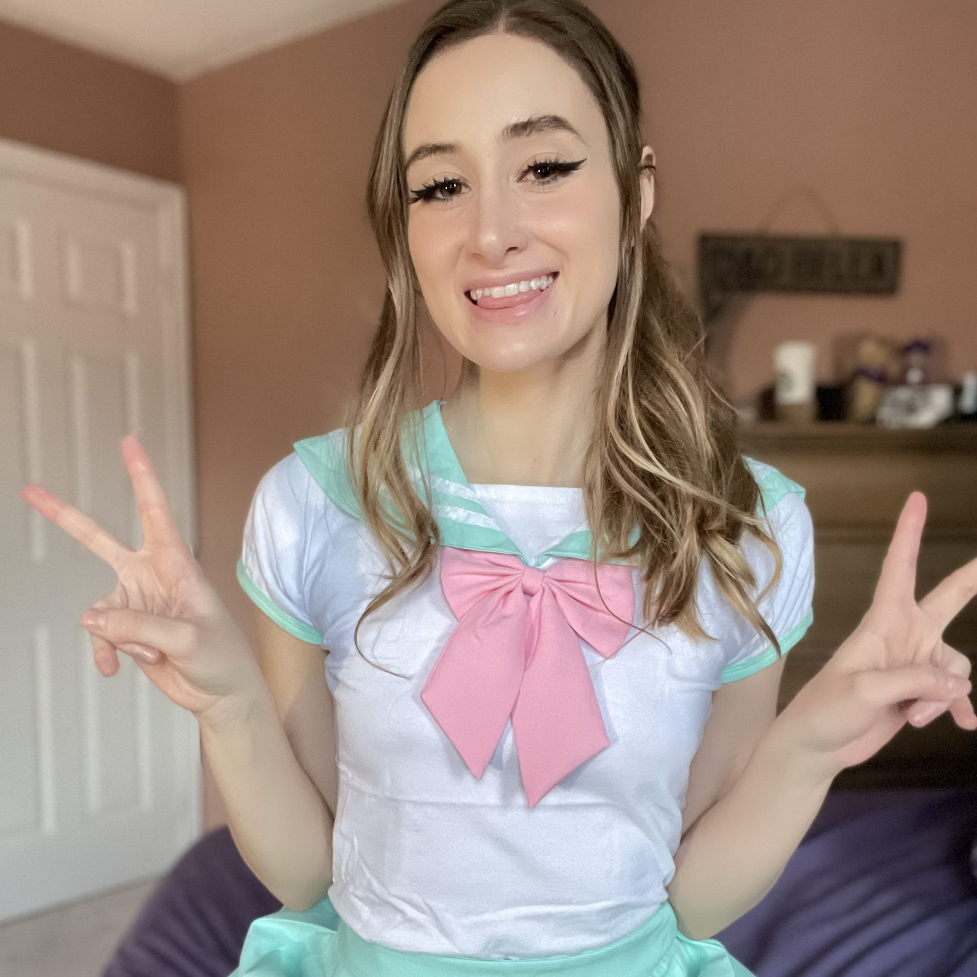 Красивая девочка хвастается своей большой грудью