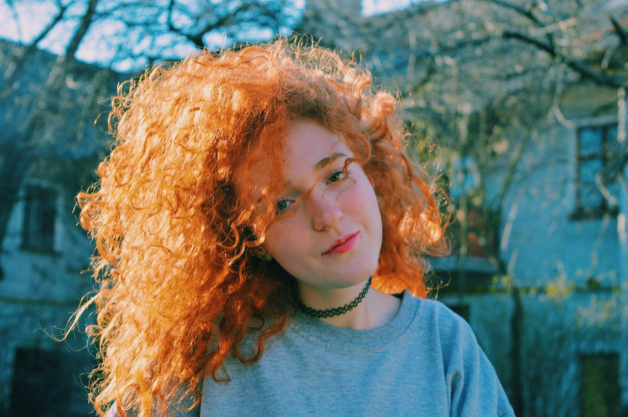 Симпатичная рыжеволосая девушка с прекрасной грудью и идеальной фигурой