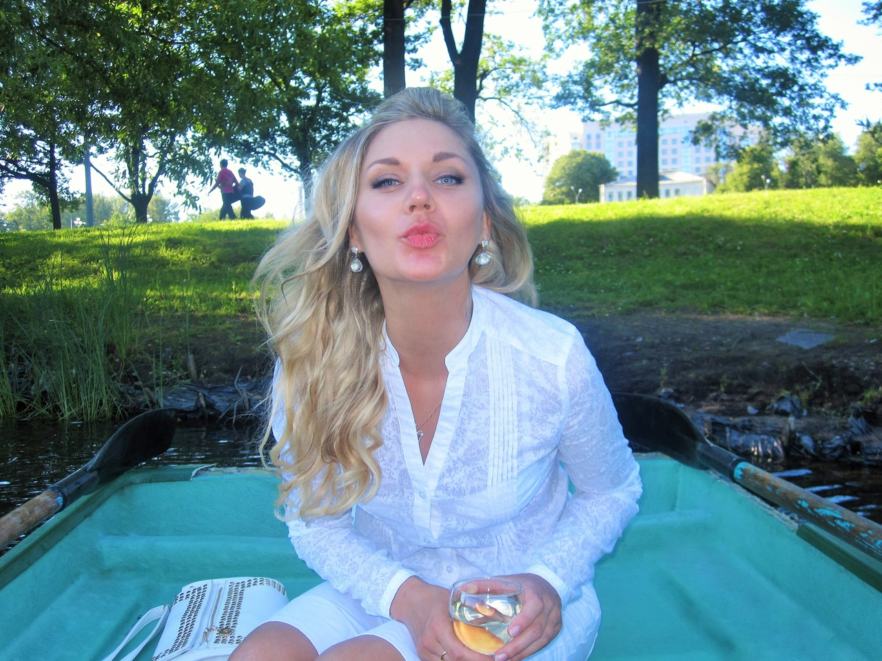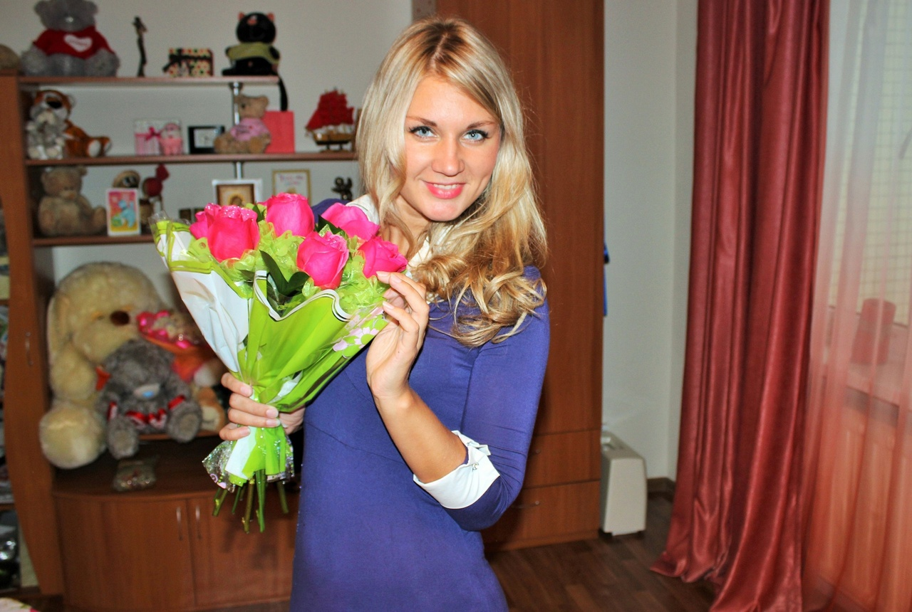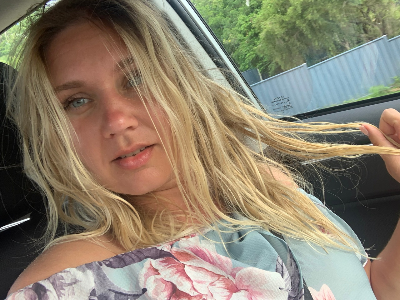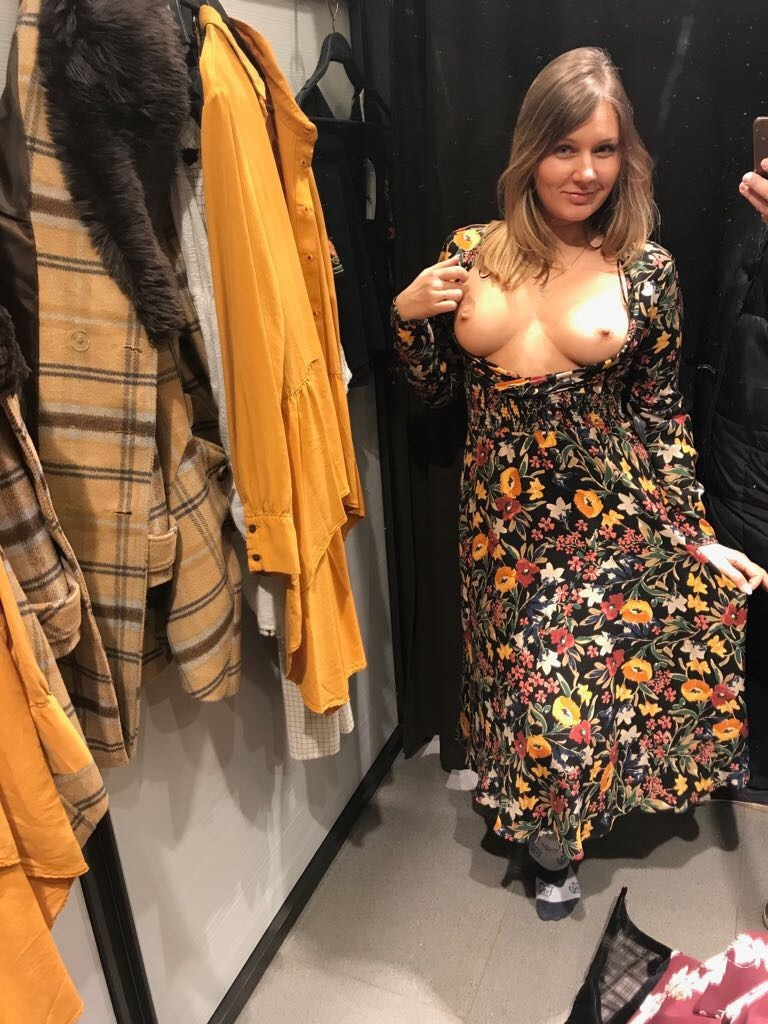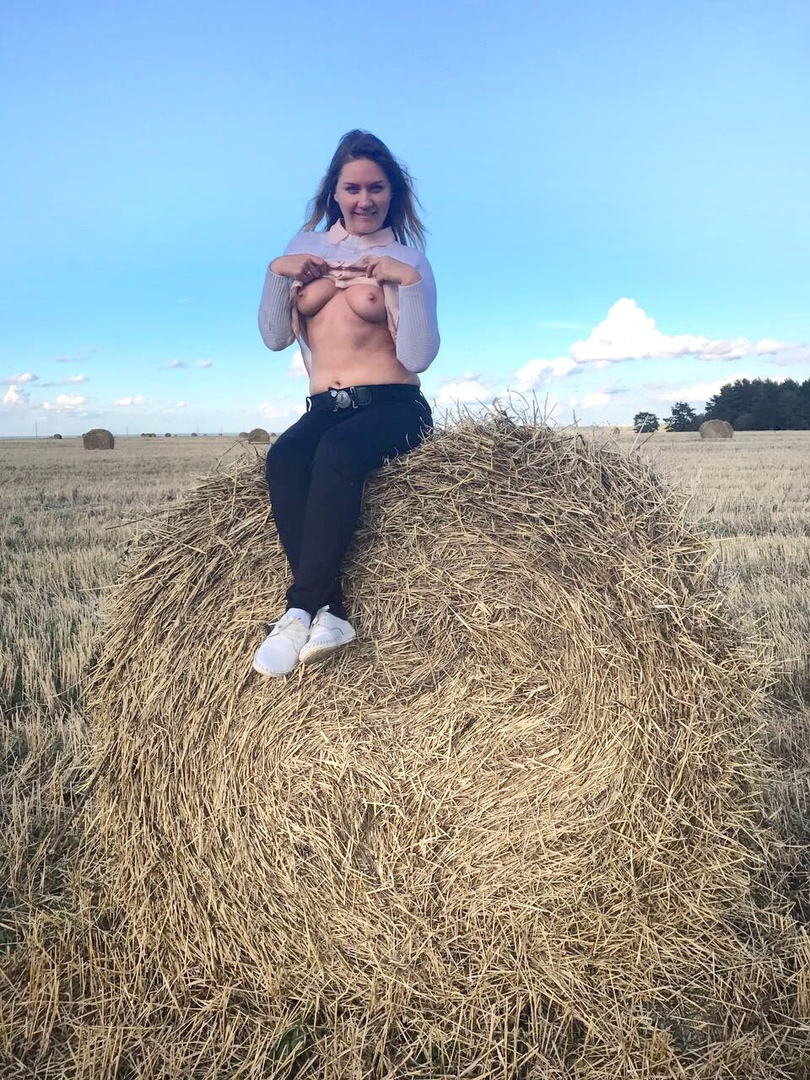Симпатичная блондинка демонстрирует свое тело и пускается по кругу