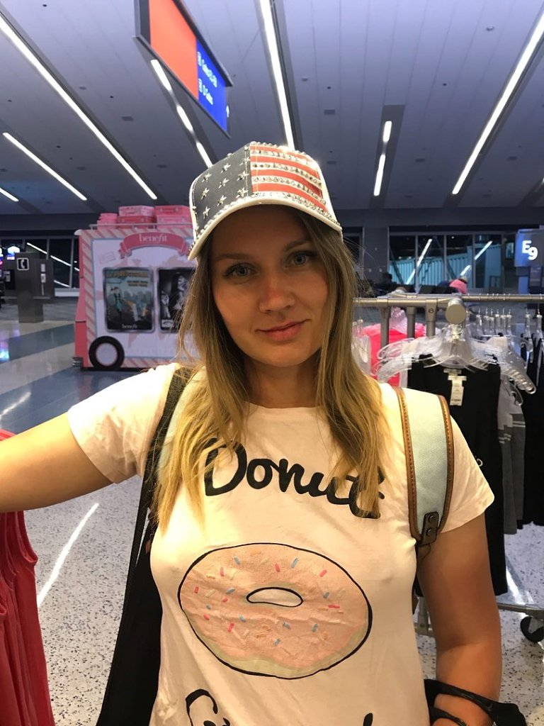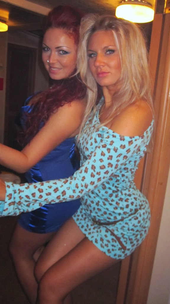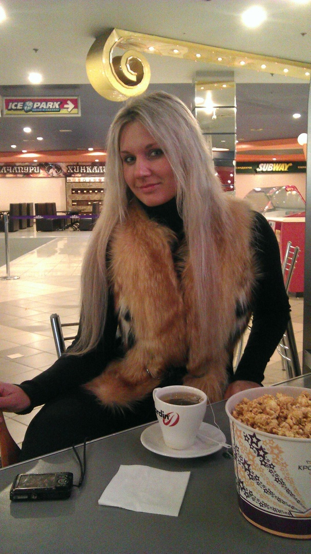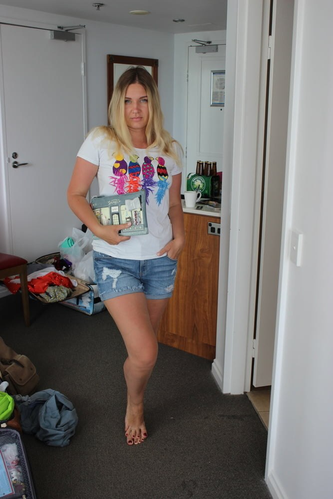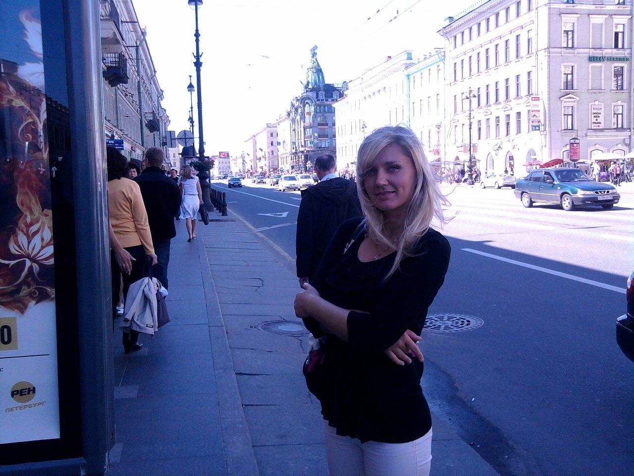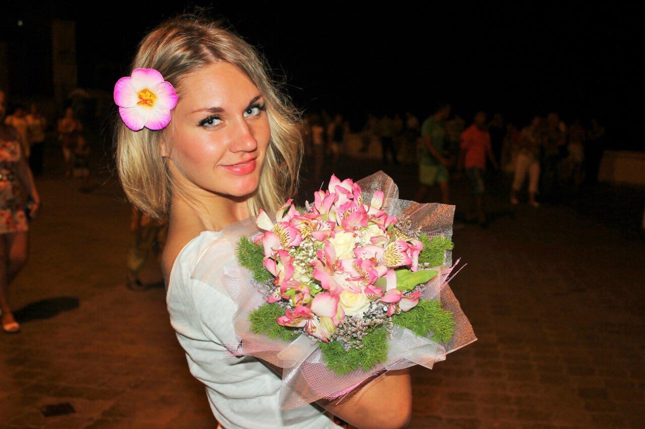 Симпатичная блондинка демонстрирует свое тело и пускается по кругу
