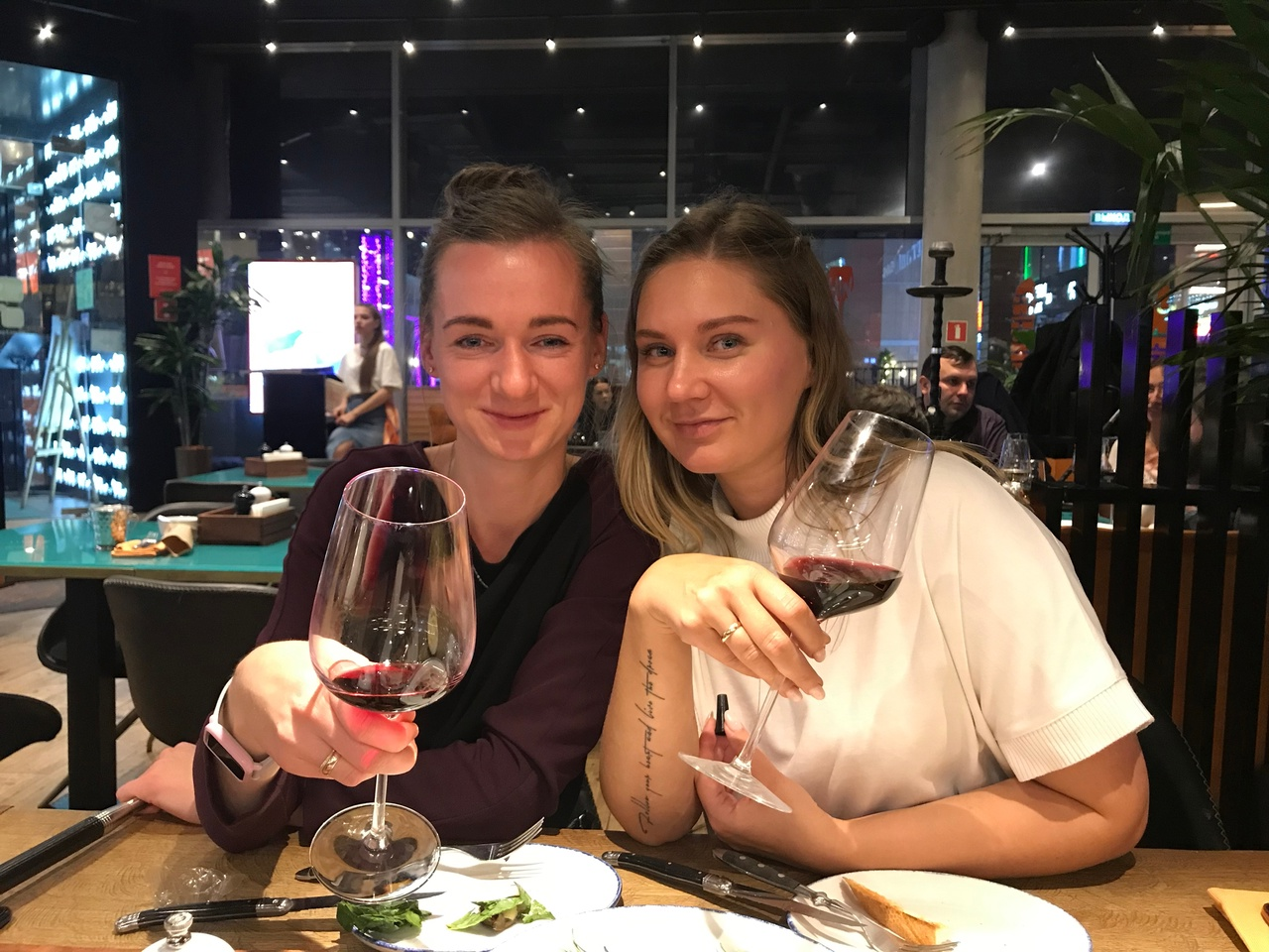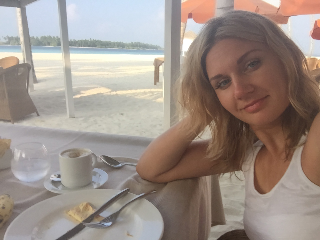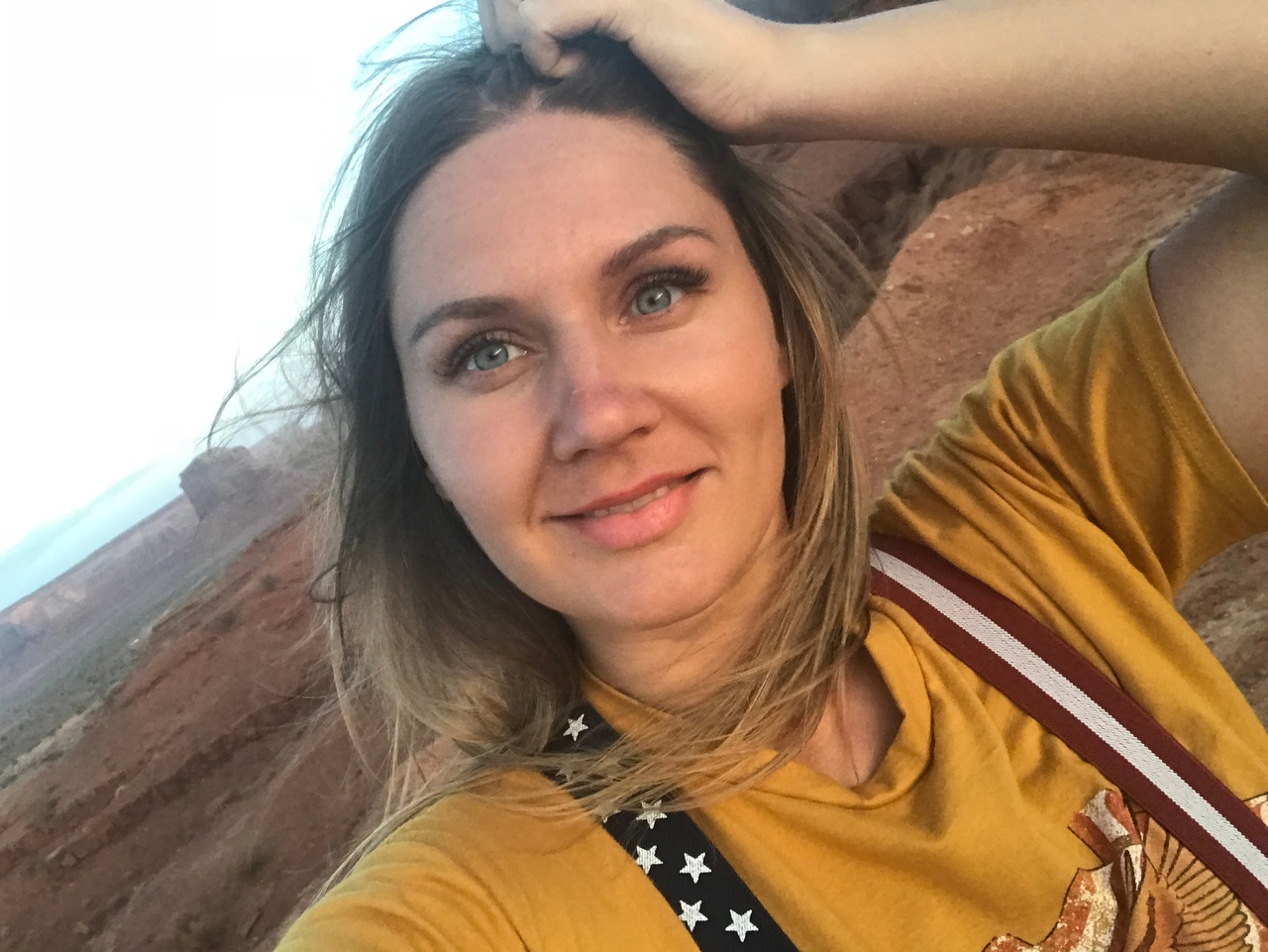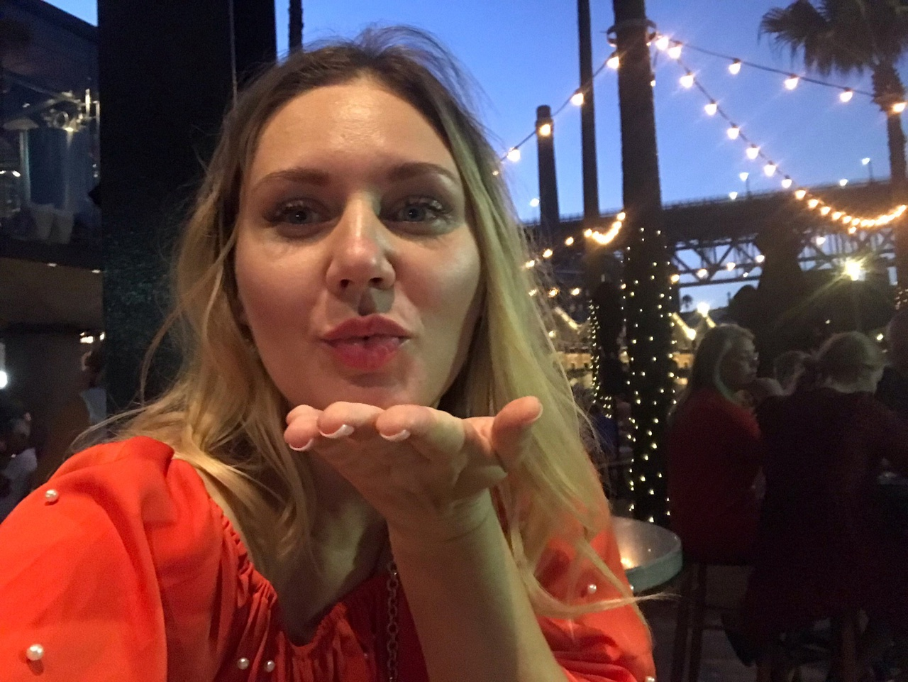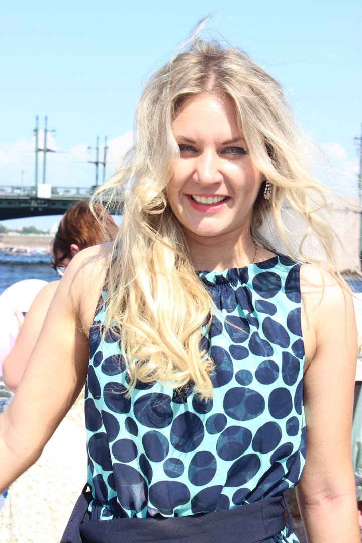 Симпатичная блондинка демонстрирует свое тело и пускается по кругу