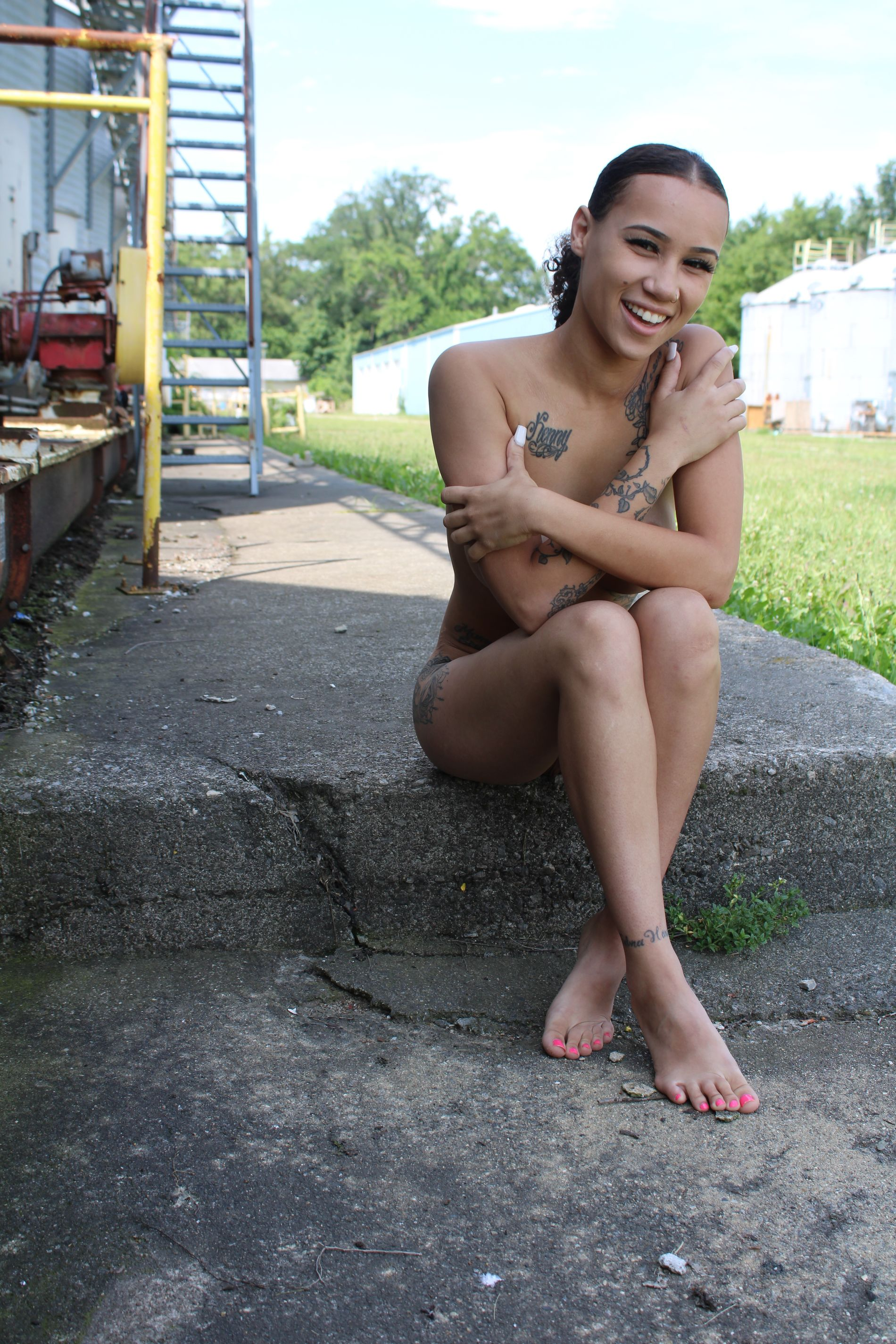 Девушка демонстрирует своё обнажённое тело и свою писю