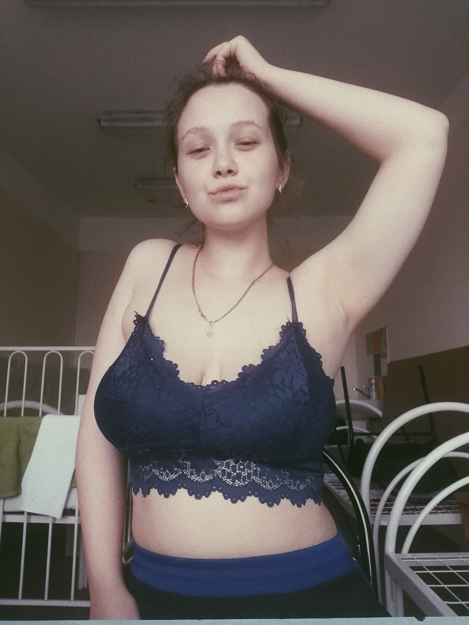 Девушка демонстрирует своё обнажённое тело и свою писю