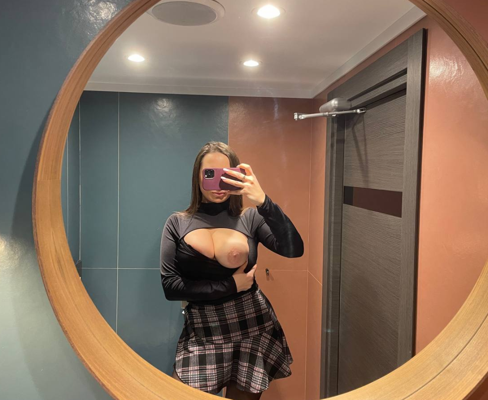 Смотришь, как она стягивает с плеч тонкую бретельку — и уже не можешь оторваться. Домашняя съёмка, ванная комната, кафельные стены и мягкий свет. На ней сначала только кружевное бельё телесного цвета, потом и его не остаётся. Голая милфа встаёт у зеркала, поворачивается спиной, оглядывается через плечо. Видишь, как она медленно раздевается, показывает округлые бёдра, полную грудь, плоский живот. Потом ложится на край ванны, закидывает руку за голову — и объектив ловит каждую линию её обнажённого тела.