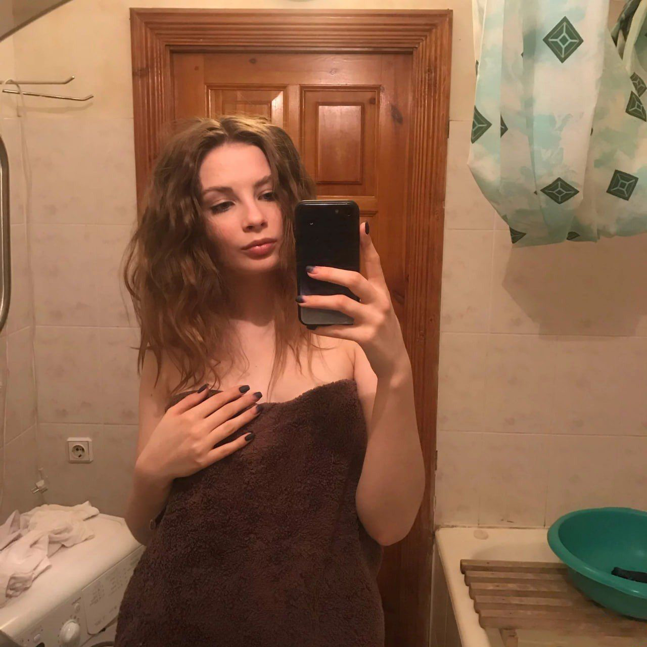 Смотришь, как она стоит у зеркала в ванной — на ней только белое кружевное бельё и ничего больше. Видишь, как медленно снимает бретельки, поворачивается боком, откидывает волосы назад. Голая спина, округлые бёдра, плавный изгиб талии — она показывает себя спокойно, без спешки. Это домашняя съёмка, и видно, что ей комфортно. Обнажённая, она садится на край ванны, ноги вытянуты, руки чуть откинуты назад. В финале — крупный план: расстёгнутый крючок лифчика и пальцы, которые его придерживают.