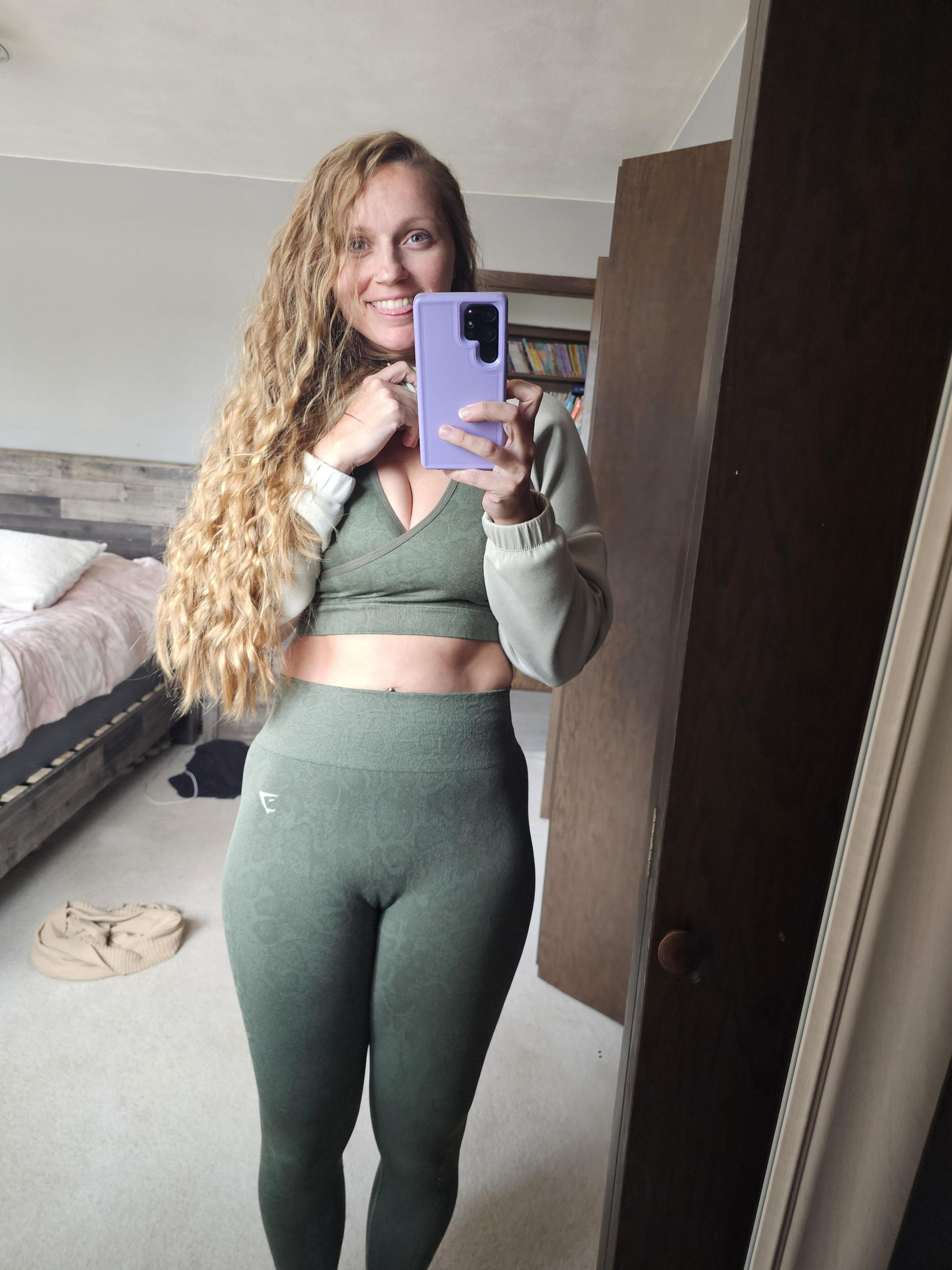 Длинноволосая красотка устраивает домашнюю съёмку прямо в своей спальне. Она стоит перед зеркалом в одном кружевном белье, держит телефон и снимает себя с разных углов. Волосы рассыпаются по плечам и спине. Девушка снимает бретельки, опускает лямки и показывает грудь крупным планом. Затем поворачивается спиной, оглядывается через плечо и делает кадр округлых ягодиц в стрингах. В финале она ложится на кровать, вытягивается в полный рост и снимает себя сверху — живот, бёдра и расстёгнутые джинсы крупным планом.
