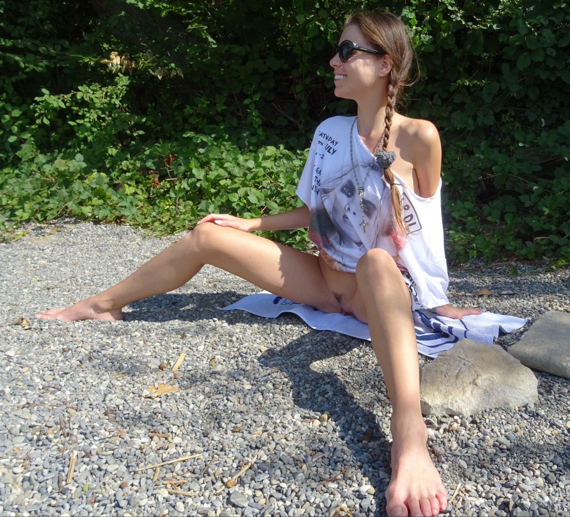 Молодая жена на улице — и никаких трусиков под юбкой. Любительские фото фиксируют момент: она останавливается, оглядывается и медленно раздвигает ноги прямо на открытом воздухе. Камера работает снизу и сбоку, захватывая детали — голые бёдра, край юбки, уличный фон за спиной. Несколько кадров крупным планом: ноги раздвинуты, между ними — ничего лишнего, только она сама.