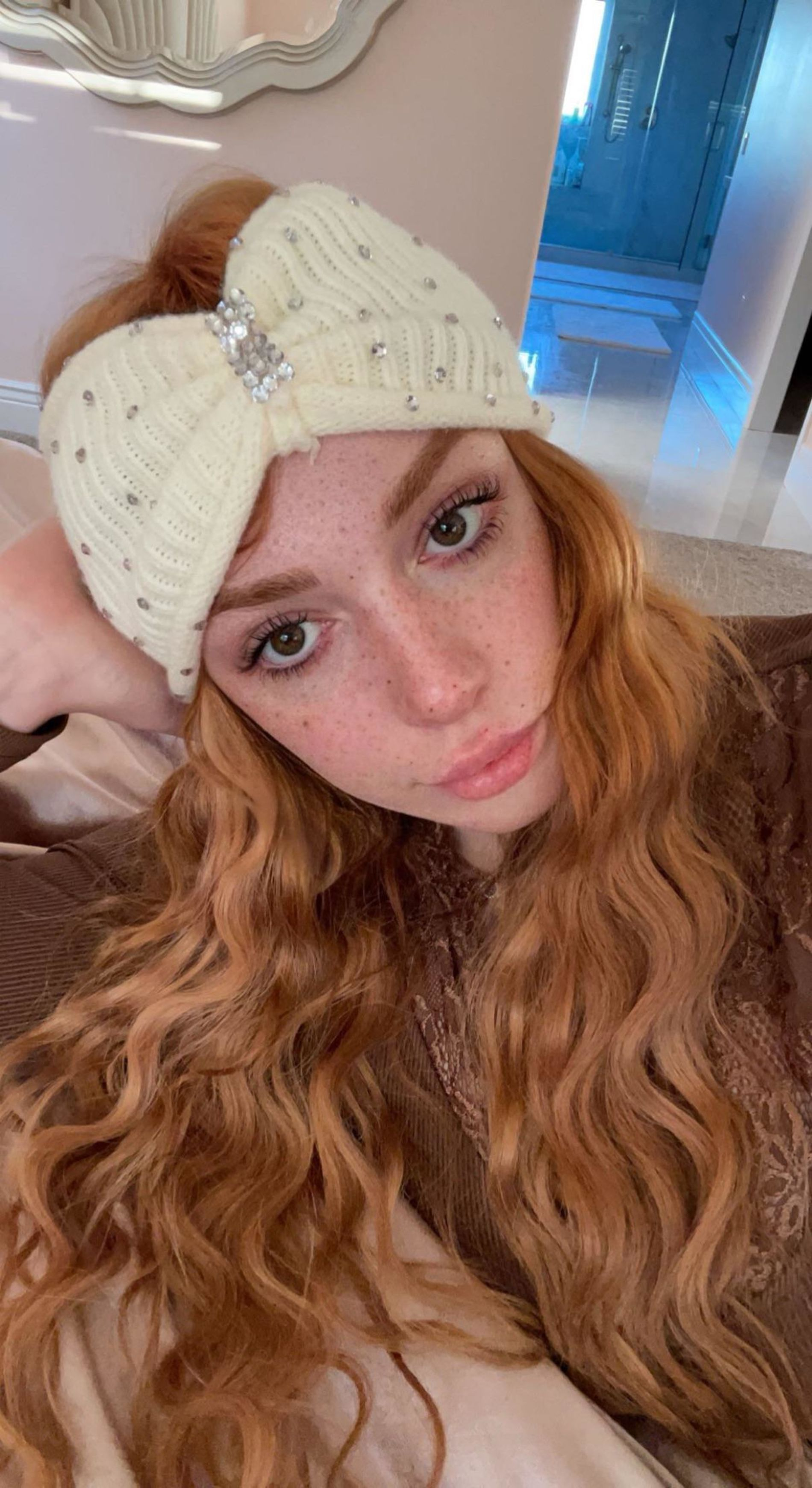 The redhead with fiery hair is not shy to show off her perfect curves and divine breasts. Her body is as if created for sin, and her bust just beckons to explore every inch of skin. Do not miss the opportunity to enjoy this seduction and plunge into the world of passion and lust with her.